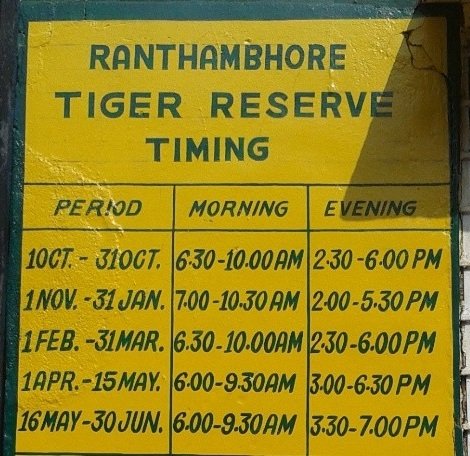 Safari Schedule at Ranthambore